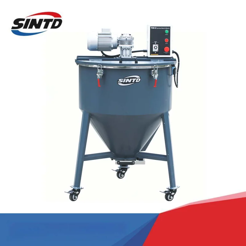TVM-U歐化立式混合機的結構原理與本公司先前設計制造的產(chǎn)品不同。在內部中央部位有安裝一攪拌螺旋桿及套筒,運轉時,待混合的原料在料桶底部被螺旋桿卷入。沿著套筒被卷至頂端后均勻散落。如此便可于短時間完成均勻混合且更能節(jié)省能源。所以會與原料接觸的機器表面均采用不銹鋼制造,能確保原料有受污染。本產(chǎn)品現(xiàn)階段區(qū)分為80U、160U、300U三種機型,